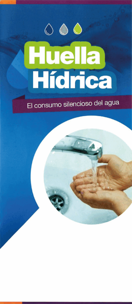 El tríptico aborda el concepto de huella hídrica, es decir, la cantidad total de agua empleada directa e indirectamente en los productos y actividades cotidianas. Explica sus componentes (azul, gris y verde) y ejemplifica el consumo oculto de agua en alimentos, ropa y objetos de uso común. Además, entrega consejos prácticos para reducir el consumo doméstico mediante hábitos simples, fomentando la conciencia sobre el uso responsable del recurso.