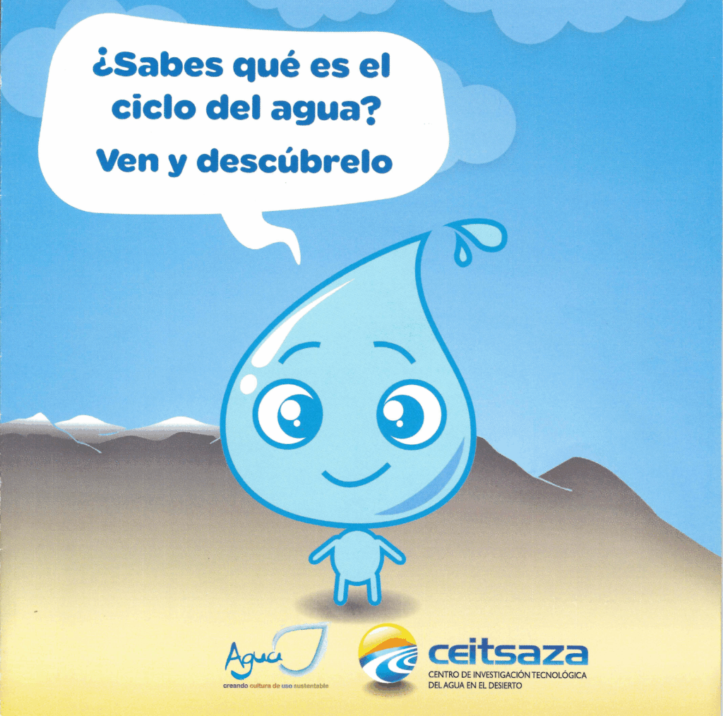 El tríptico explica de forma ilustrada el ciclo del agua y sus principales etapas: evaporación, condensación, precipitación, infiltración y escorrentía. Destaca el papel del sol como motor del proceso y cómo el agua circula entre océanos, ríos, suelos y atmósfera, incluyendo fenómenos como la sublimación y la evapotranspiración. Además, entrega consejos prácticos para el ahorro del recurso en el hogar, incentivando la conciencia sobre su cuidado y la importancia de mantener este ciclo vital.