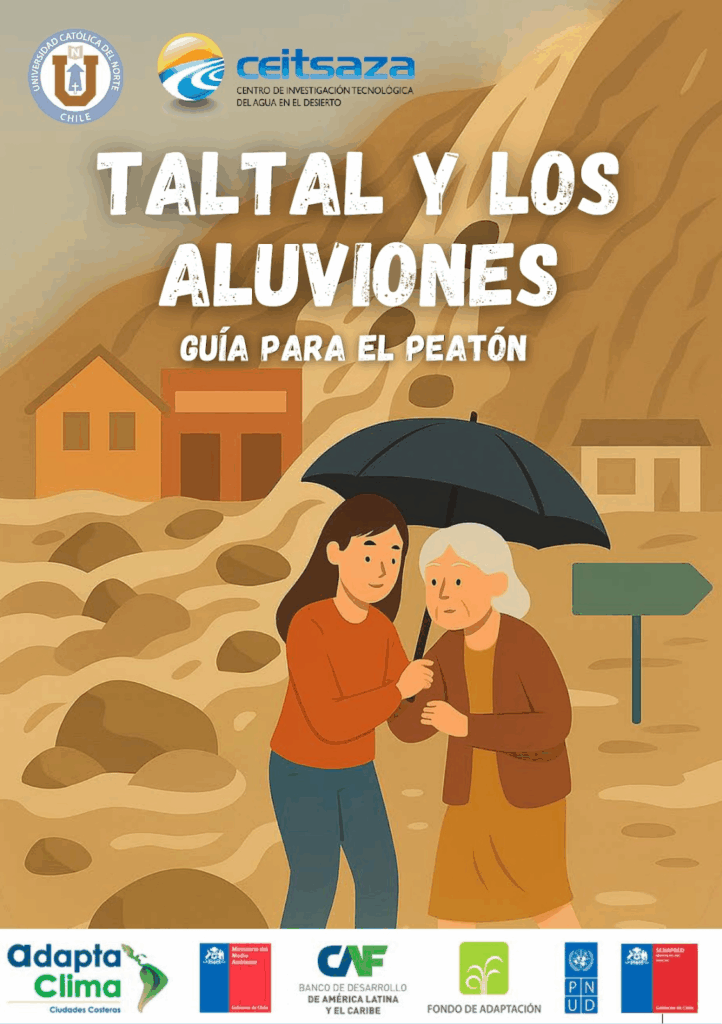 Esta guía está dirigida a peatones y aborda los aluviones en Taltal. Explica qué son, cómo se forman, qué riesgos implican para quienes caminan o transitan por zonas vulnerables, y entrega recomendaciones prácticas para actuar de forma segura antes, durante y después de estos eventos.